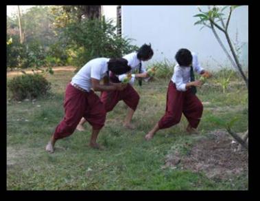 า วางขาขวาลง ก้